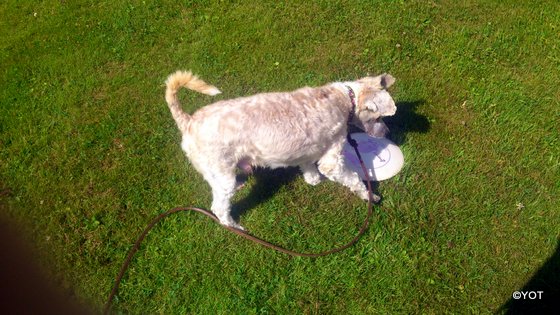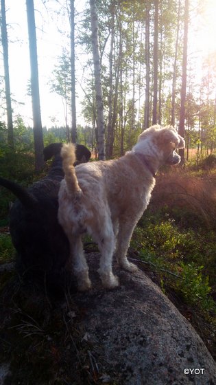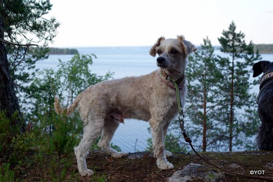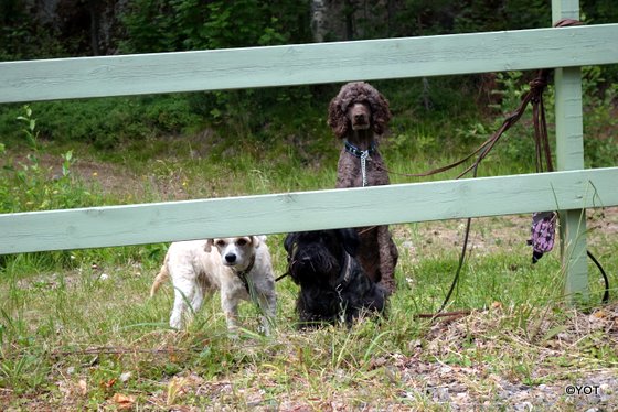 Jo jonkun aikaa mua on hirvittänyt piha-aitamme. Pihan takana menee hiljainen pihatie ja ennen siitä meni hyvin satunnaisesti kulkijoita. Nyt koiranulkoiluttajat ovat löytäneet reitin ja koiria menee tuosta nyt useamman kerran viikossa. Aidan korkeus on meillä ollut 80cm ja se on Pupullekkin riittänyt, ei se ole yli mennyt, mutta silti on pelottanut. Nyt vaihdettiin aita 110cm korkeaan, niin ei tarvitse niin vahtia meneekö koira vai ei.